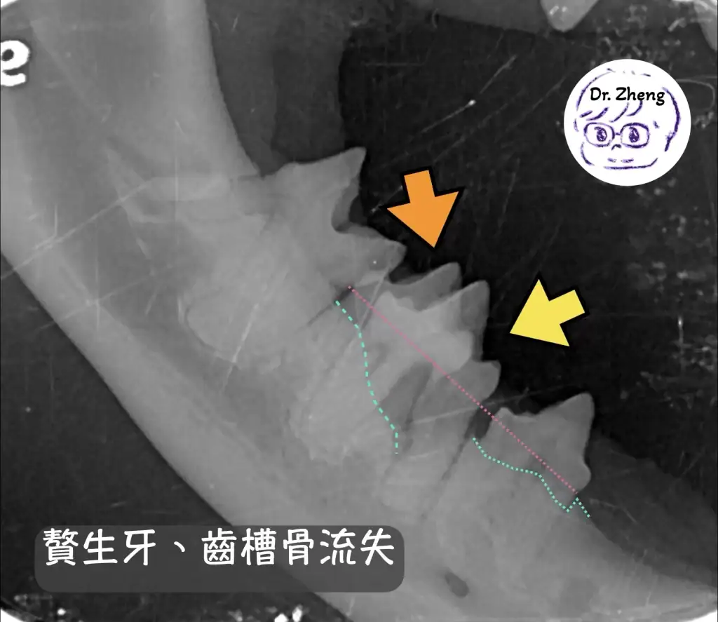 但再更仔細察看,竟然兩邊下顎都多一顆牙!(見下圖)